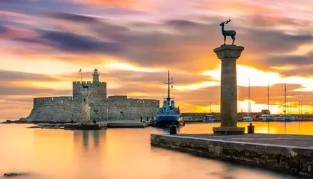 Συγκέντρωση στο λιμάνι Ηρακλείου τις πρώτες πρωινές ώρες, συνάντηση με τη συνοδό του Ktravel, η οποία θα φροντίσει για την ομαλή επιβίβαση στο πλοίο και θα σας συνοδεύει σε όλη τη διάρκεια της εκδρομής.Αναχώρηση με το πλοίο blue star ferries στις 04:00.π.μ.Άφιξη στο λιμάνι της Ρόδου στις 15:00 μμ.Εκεί μας περιμένει ο τοπικός ξεναγός, μαζί με το ιδιωτικό μας λεωφορείο, για να ξεκινήσουμε την πρώτη γνωριμία με την πόλη. Στάση στο λιμάνι Μανδράκι,με τα ελάφια-σύμβολα της Ρόδου και θέα στον χώρο του Κολοσσού,διέλευση έξω από τα μεσαιωνικά τείχη και είσοδος από την Πύλη Ελευθερίας. Περίπατος στην Οδό Ιπποτών, τον πιο καλοδιατηρημένο μεσαιωνικό δρόμο της Ευρώπης, με τα εντυπωσιακά κτίρια των ξένων ταγμάτων. Στη συνέχεια, μεταφορά σε επιλεγμένο εστιατόριο της Παλιάς Πόλης για το μεσημεριανό μας γεύμα με παραδοσιακές γεύσεις(έξοδα ατομικά).Μετά το γεύμα,κατευθυνόμαστε προς το Island City Hotel 4* για την τακτοποίησή μας.Μοντέρνο ξενοδοχείο στην καρδιά της πόλης, ιδανικό για εύκολη πρόσβαση σε Παλιά και Νέα Πόλη. Κομψά και άνετα δωμάτια,lobby bar,εστιατόριο και φιλικό περιβάλλον για ξεκούραση μετά από μια γεμάτη μέρα. Ελεύθερος χρόνος για χαλάρωση στο ξενοδοχείο ή βόλτα στη γύρω περιοχή.Το βράδυ,προαιρετική ομαδική βόλτα με τη συνοδό του Ktravel και τον τοπικό ξεναγό στα φωτισμένα σοκάκια της Παλιάς Πόλης,με στάση για καφέ ή ποτό.Επιστροφή στο ξενοδοχείο για διανυκτέρευση.